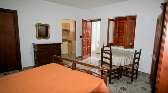 Monolocale, con due posti letto, angolo cottura, servizi privati, giardino;